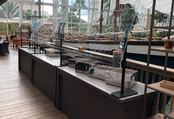 Join two Buffet Guards together with the Buffet Guard Y adapter.  Only one Y adapter will be needed for two Sneeze Guards.